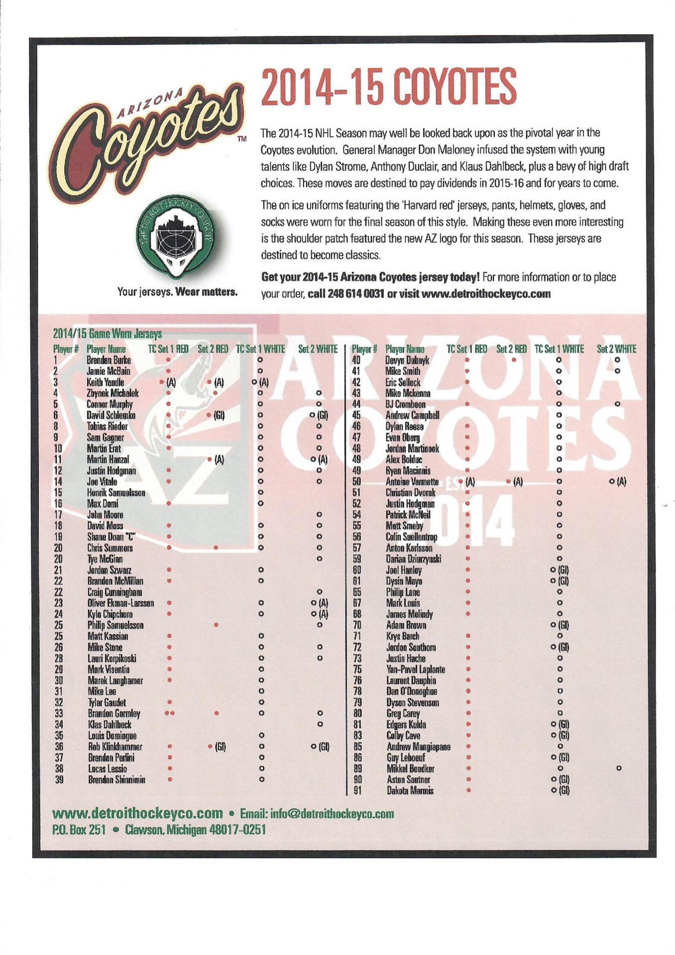 Obtained from Detroit Hockey Company, Certificate of Authenticity from Arizona Coyotes